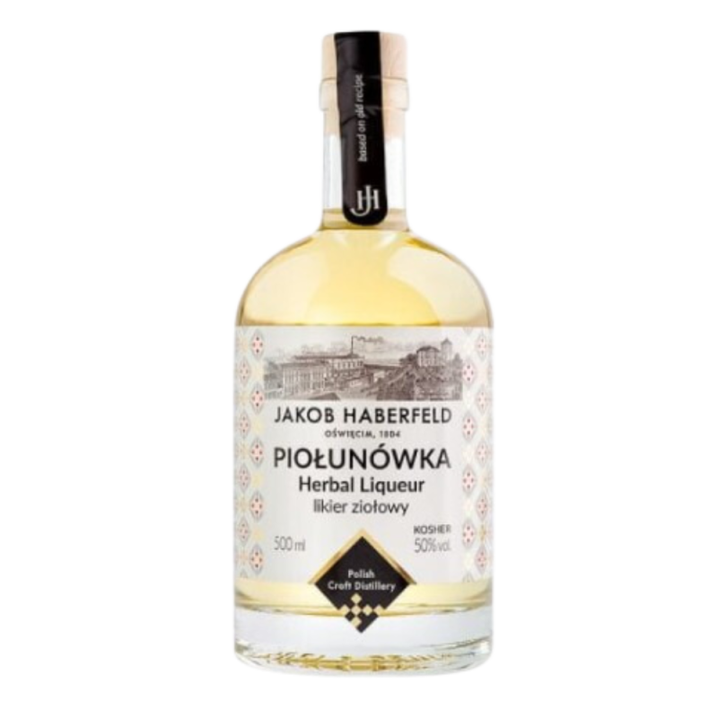 Jakob Haberfeld Piołunówka 500ml to ekskluzywny likier ziołowy przygotowywany z mieszanki piołunu i 15 innych naturalnych ziół z regionu Puszczy Białowieskiej oraz wody źródlanej pozyskiwanej bezpośrednio z ujęcia w chronionej strefie górskiej. Bardzo przyjemny słodki zapach z nutami piołunu, przypraw korzennych, kumkwatu oraz słodkiego syropu z czarnego bzu. Smak jest utrzymany w stylu dawnych likierów żołądkowych. Na etapie swej produkcji poddawany jest procesowi pięciokrotnej destylacji oraz czterokrotnej filtracji.