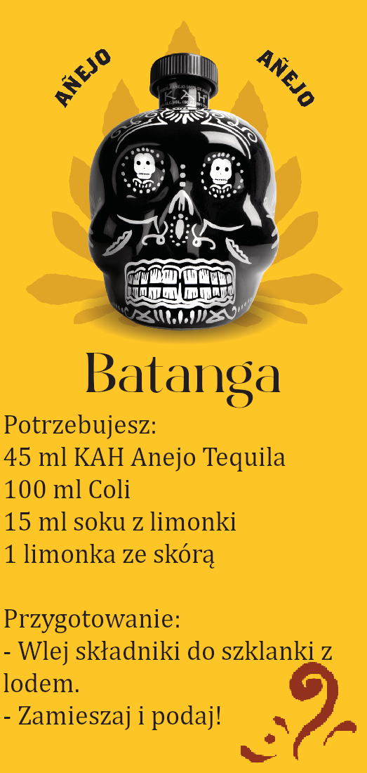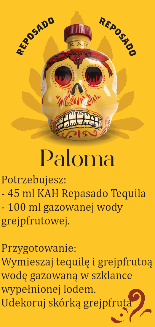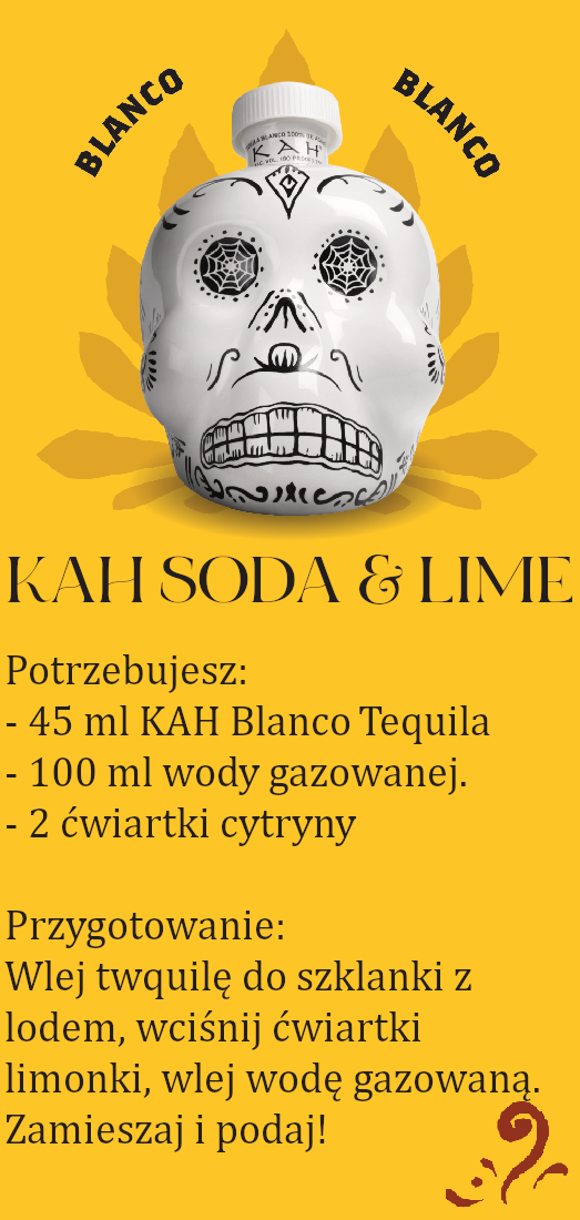 Tequila KAH powstaje w meksykańskim stanie Jalisco w 100% z agawy Blue Weber ręcznie wyselekcjonowanej przez Mistrza Destylacji Artura Fuentesa. Tequila KAH butelkowana jest w ceramiczne czaszki inspirowane Calaveras, czaszkami wykonywanymi z cukru do rytuałów podczas święta zmarłych. Tequila wylewano na ziemię jako ofiarę, aby uspokoić szatana i zapewnić ludziom bezpieczeństwo.