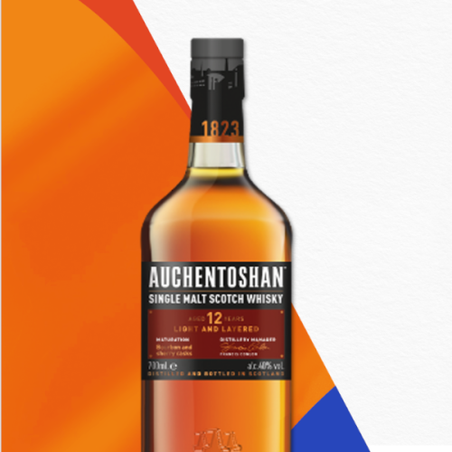Auchentoschan 12 Years Old, to przyjemnie łagodny smak, z bogactwem nut wydobywanych w procesie leżakowania w beczkach po bourbonie oraz sherry Oloroso. Ten 12-letni single malt posiada kuszący aromat prażonych migdałów, karmelizowanego toffi i charakterystyczny, gładki smak. Finisz oferuje imbirowy i lekko wytrawny akcent z przyjemną, długo utrzymującą się orzechowością.
