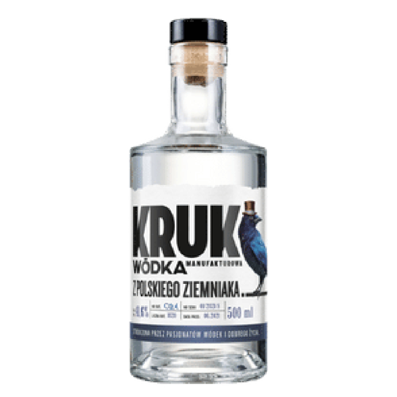 Prosty, męski kształt butelki ze szkła najwyższej próby. A Kruk? Jest autentyczny jak historia i miejsce powstania tej wódki.
